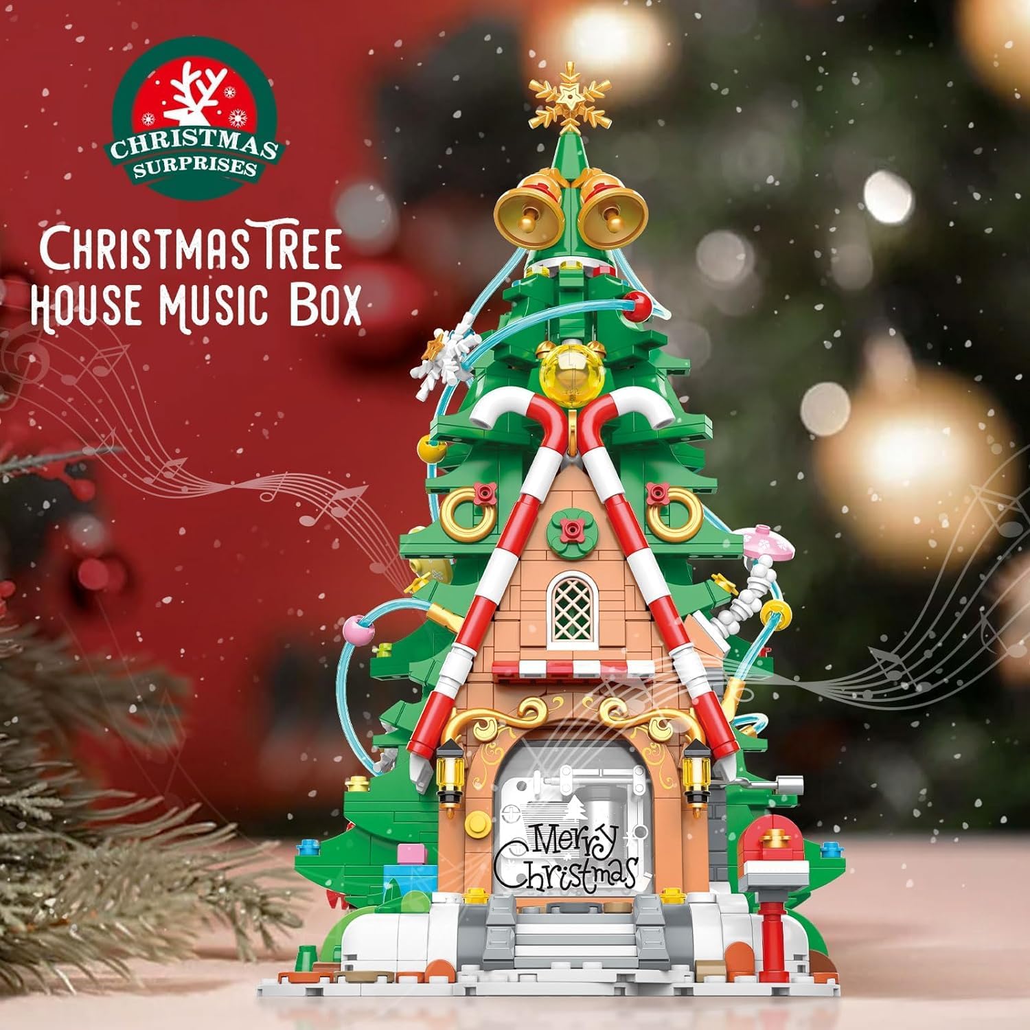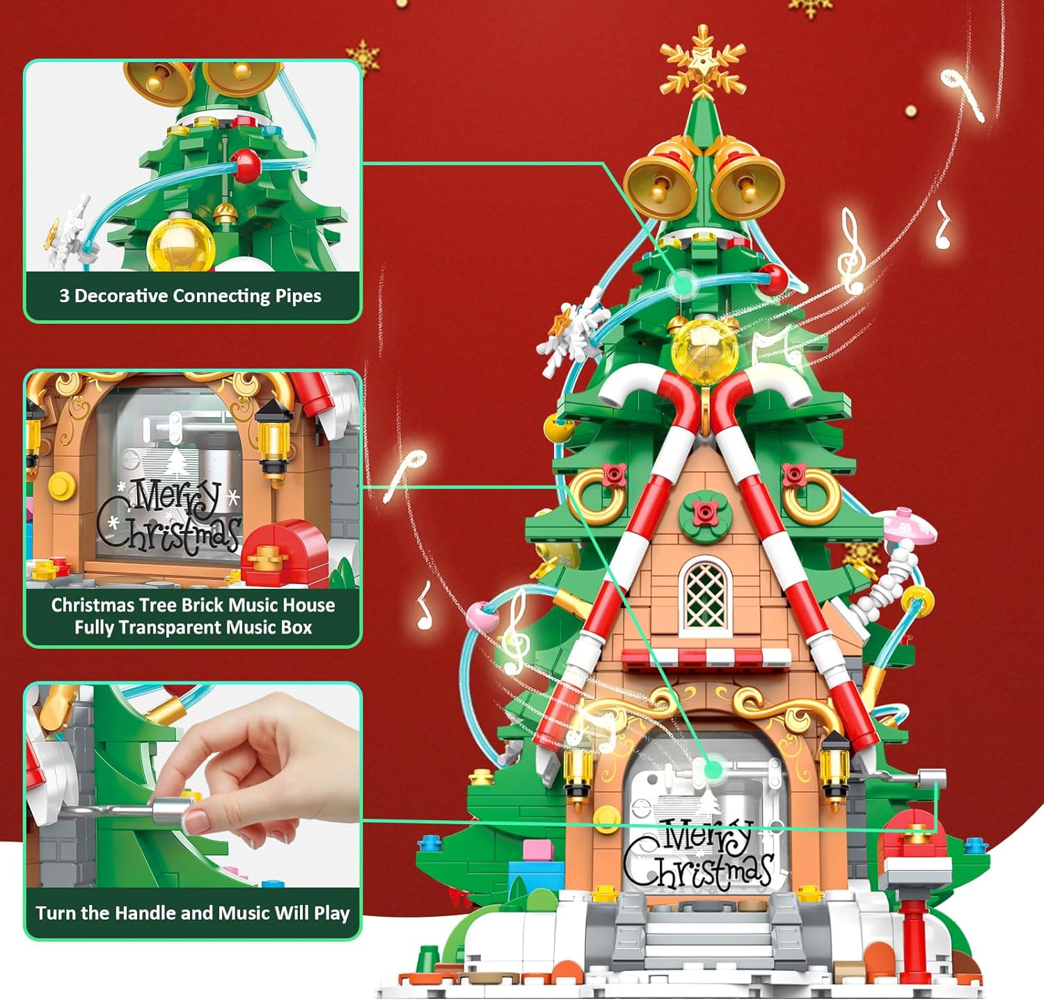 Ustvarite praznično vzdušje z ročno sestavljenim glasbenim okrasom, ki igra znano pesem “Merry Christmas” ob vrtenju ročice. Ta komplet iz 1055 kock, ki je visok 32,5 cm združuje veselje do ročnega dela in ljubezen do glasbe, je izjemno darilo za božič, novo leto ali kot prikupna dekoracija za trgovine in domače praznično prizorišče 🎁✨.