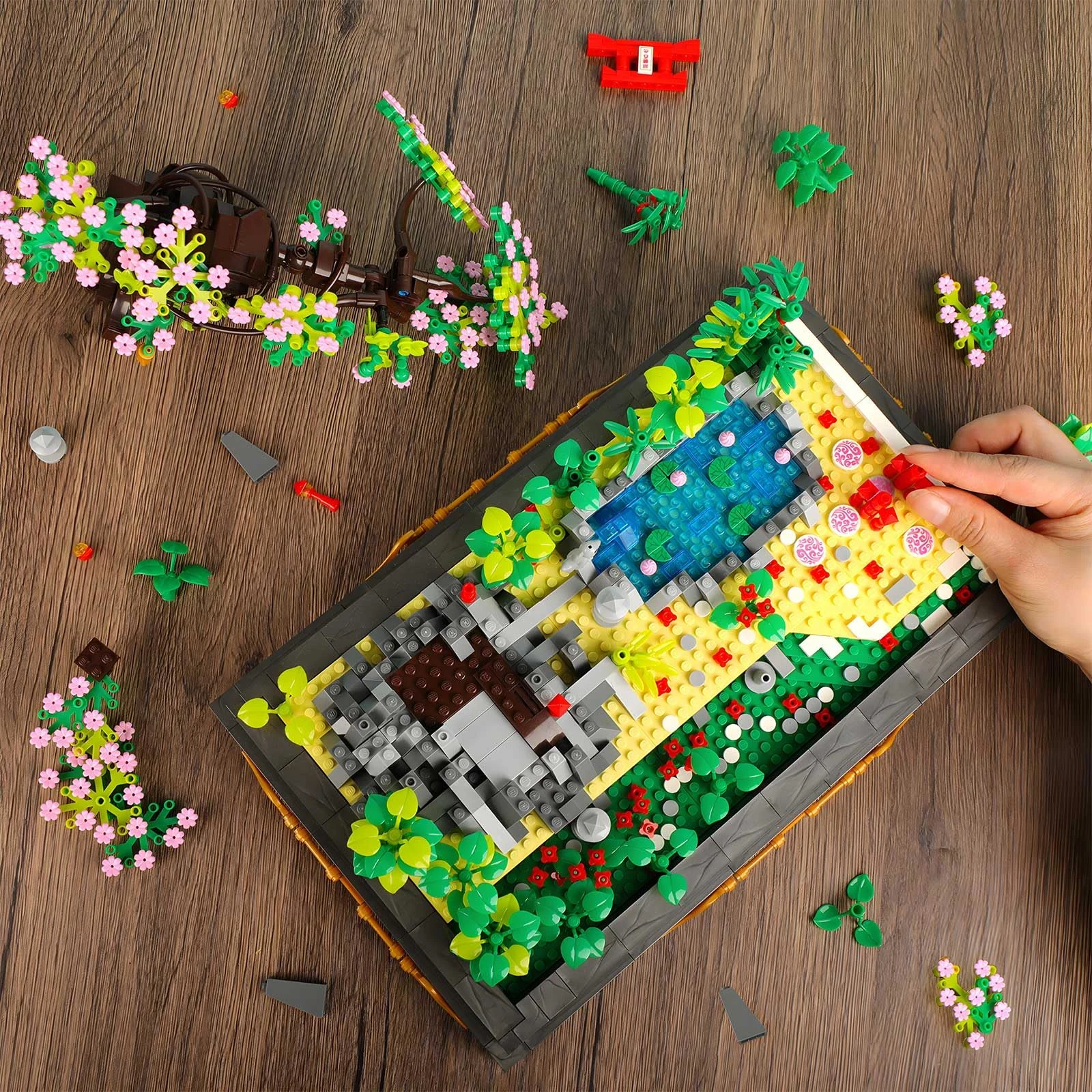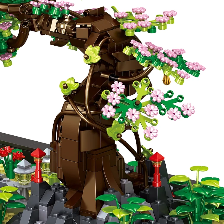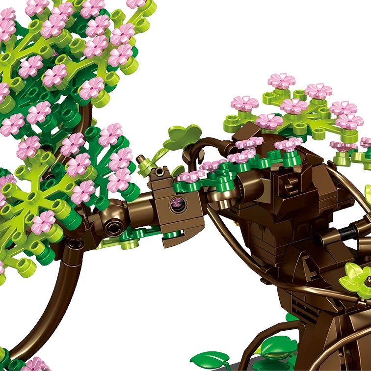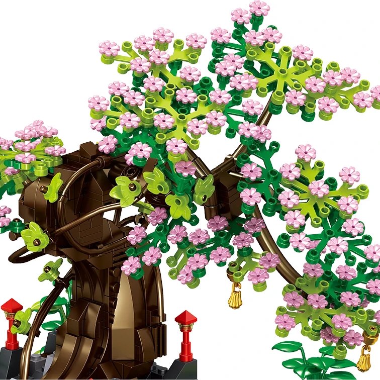 Komplet uporablja mini kocke, ki niso standardne velikosti, zato omogočajo izjemno fino teksturo, prefinjene elemente in realistično krošnjo z nežnimi rožnatimi cvetovi🧩