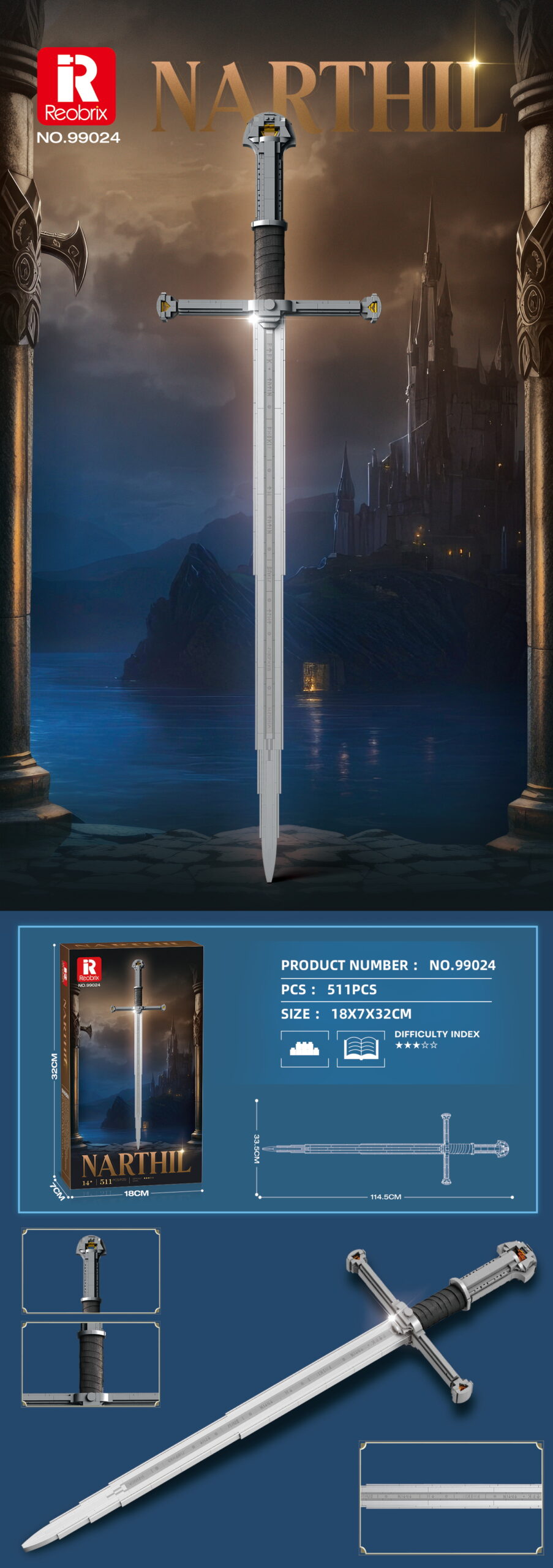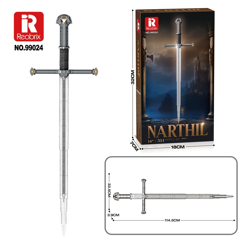 Oživi mistični Meč Narthil 🗡️z elegantenim kompletom iz 511 kock. Zasnovan kot sveti meč iz pradavnih legend, Narthil ujame brezčasen estetski silhuet in simbolno moč.