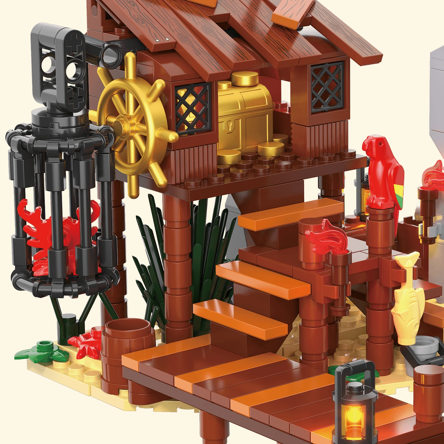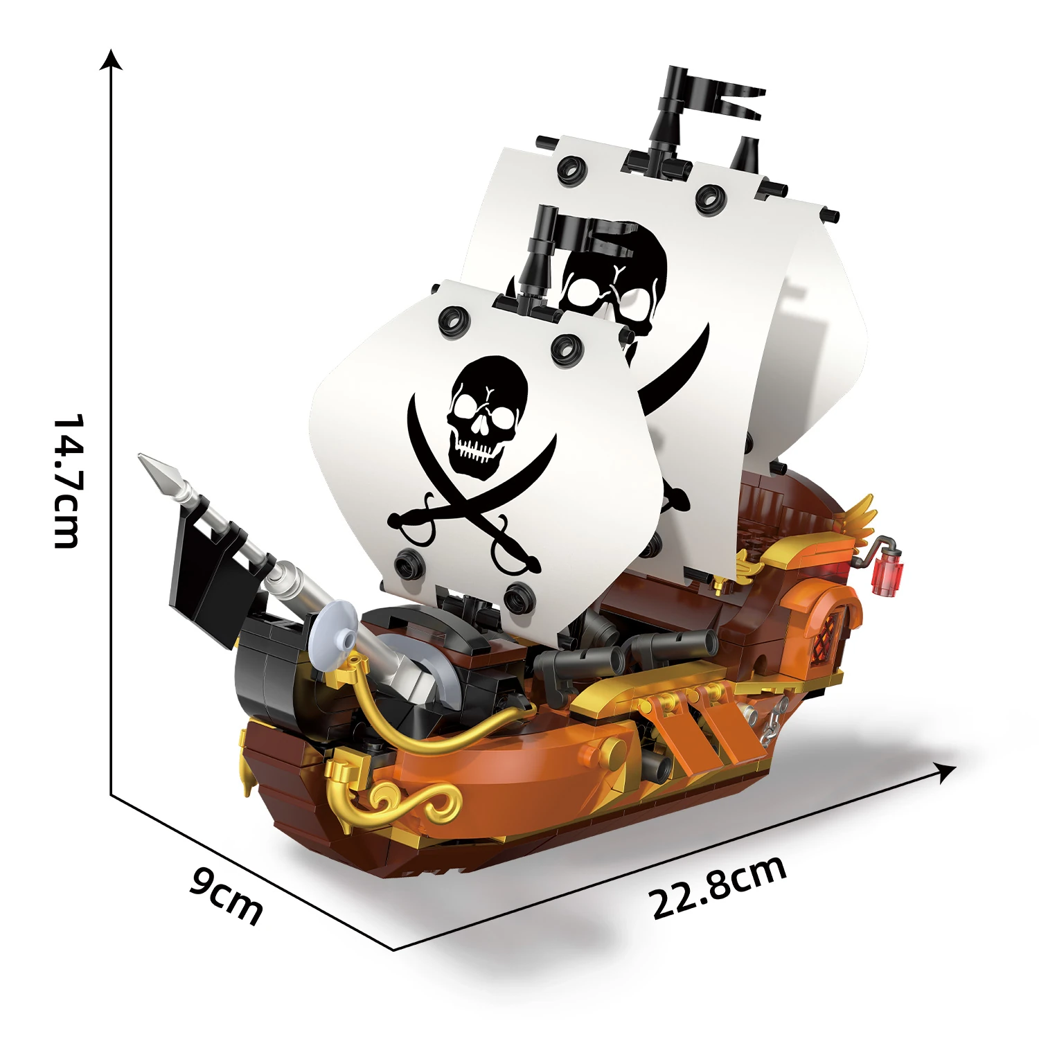 - Dekorativna vrednost — kompaktna postavitev omogoča razstavo doma, v pisarni ali kot del večje piratske scene.📏🖼️