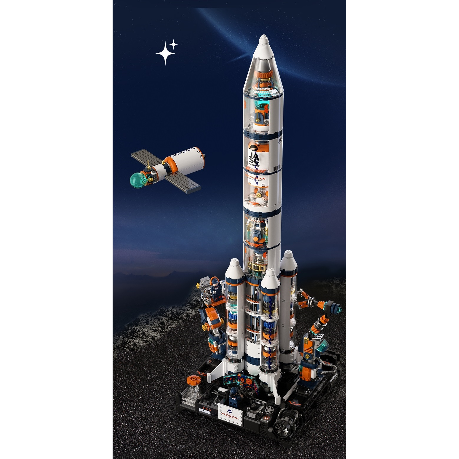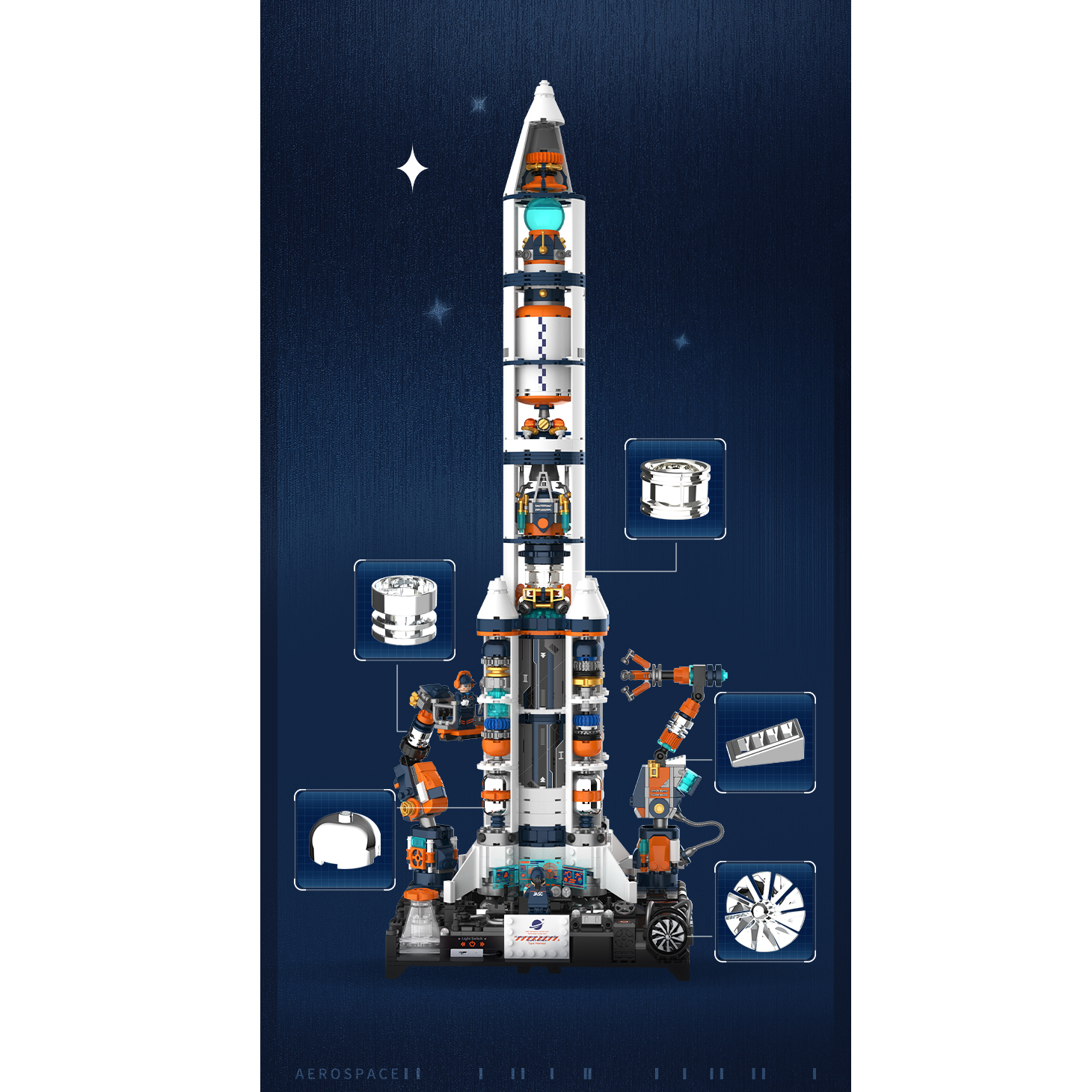 Inteligentni roki na premičnem podstavku z visoko gibljivostjo ter “kontrolna soba” poskrbita za dodatno interakcijo in ustvarita zgled zadnjih priprav se na vzlet.🛰️