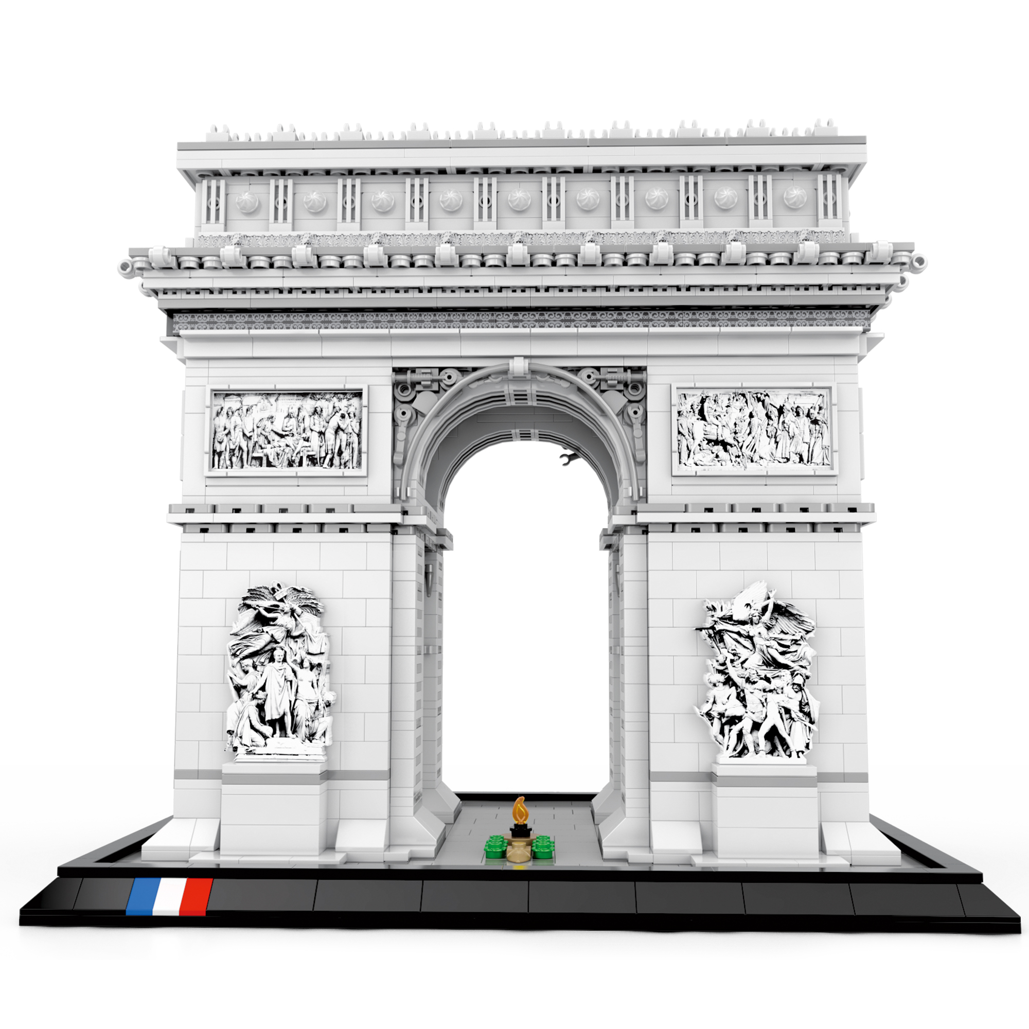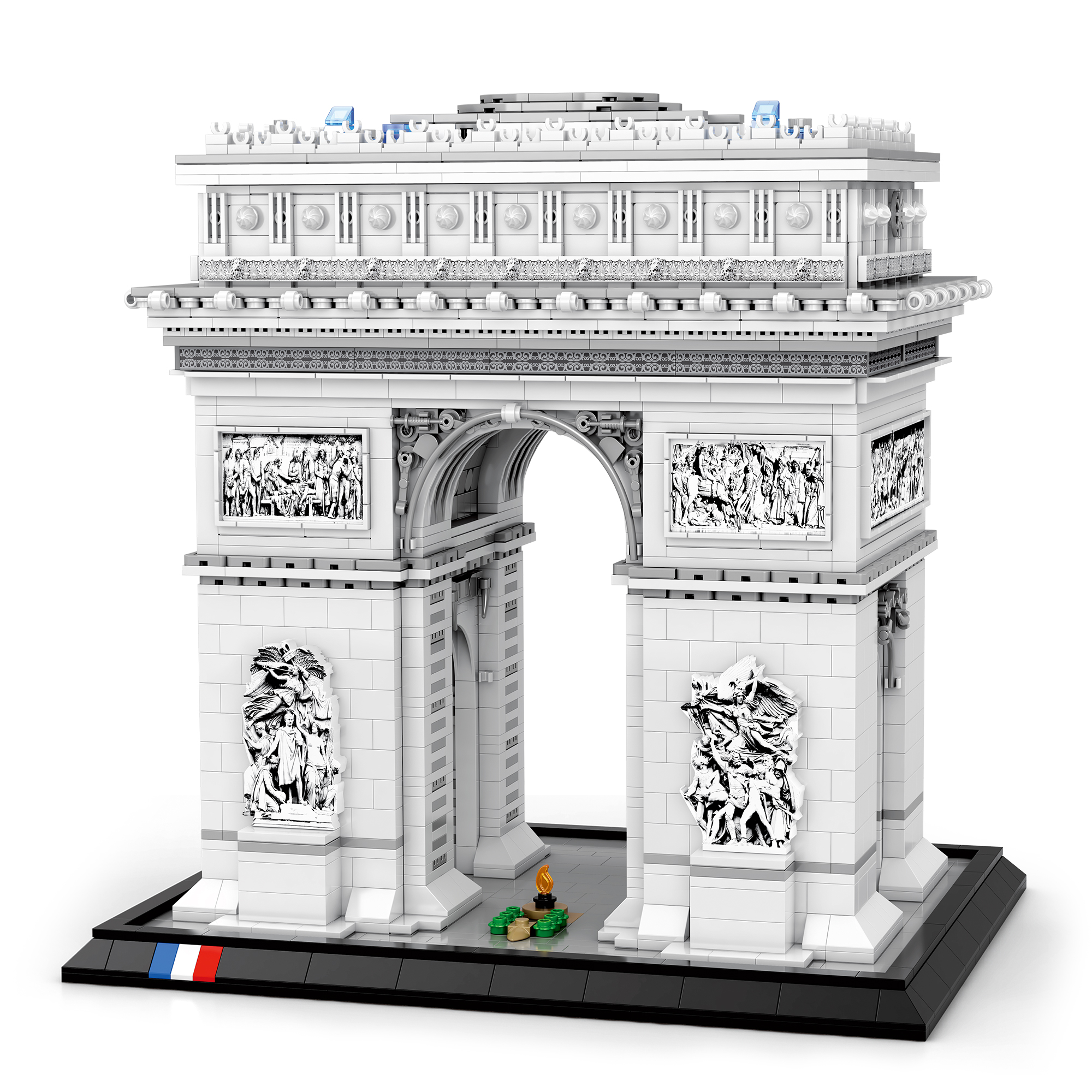 To ni le model, temveč darilo s pomenom, arhitekturna reprodukcija, ki v majhnem formatu ohranja razsežnost originala skozi teksturo reliefov, skrbno oblikovanih delov, motivom francoske zastave in premišljenih nalepk, ki dodajo poudarke ter preobrazijo model v razstavni kos za vsak prostor.