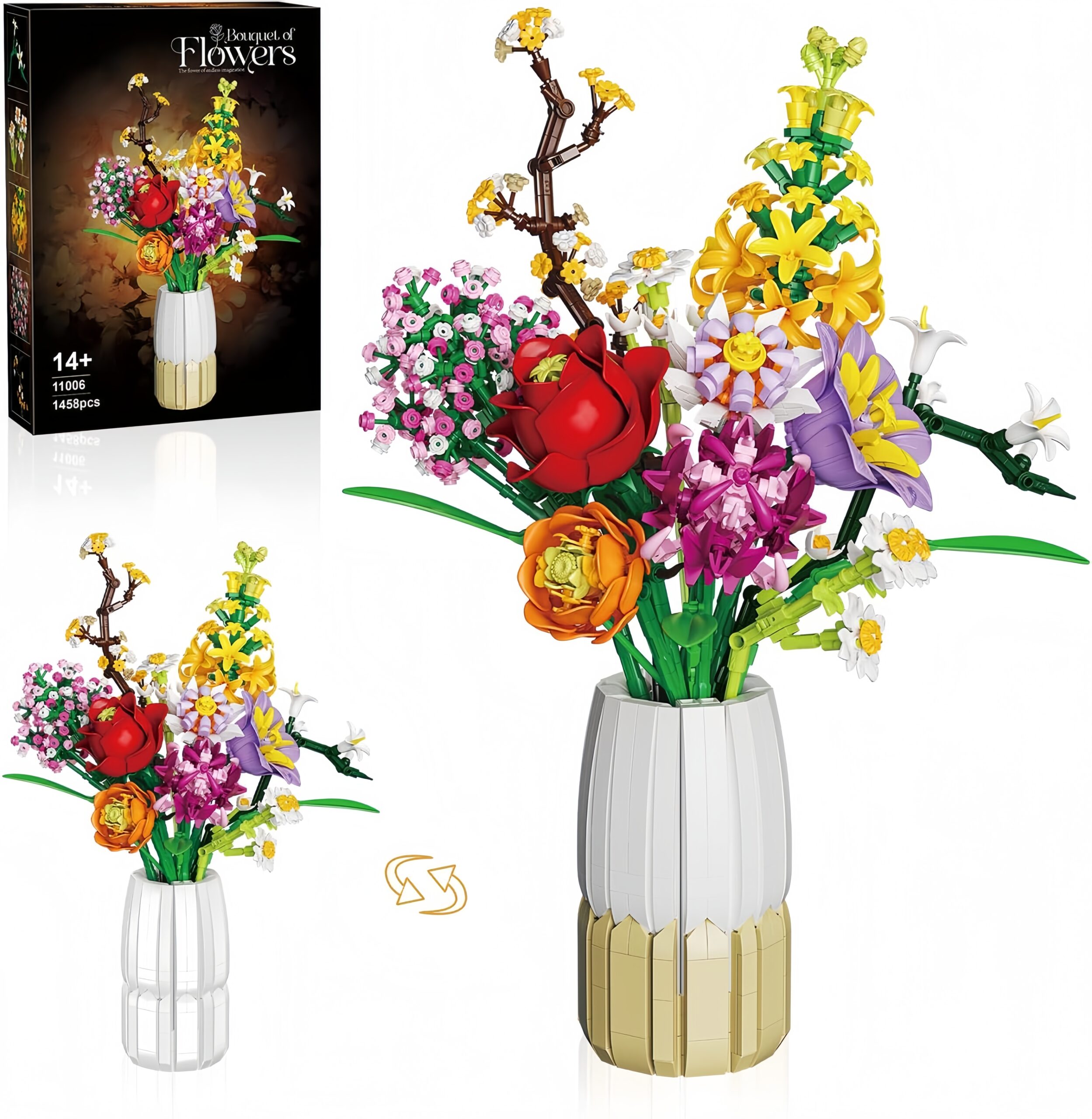 💐 Vaza šepet cvetja iz 1458 kock za cvetlično eleganco, ki ne uveni! 🌼