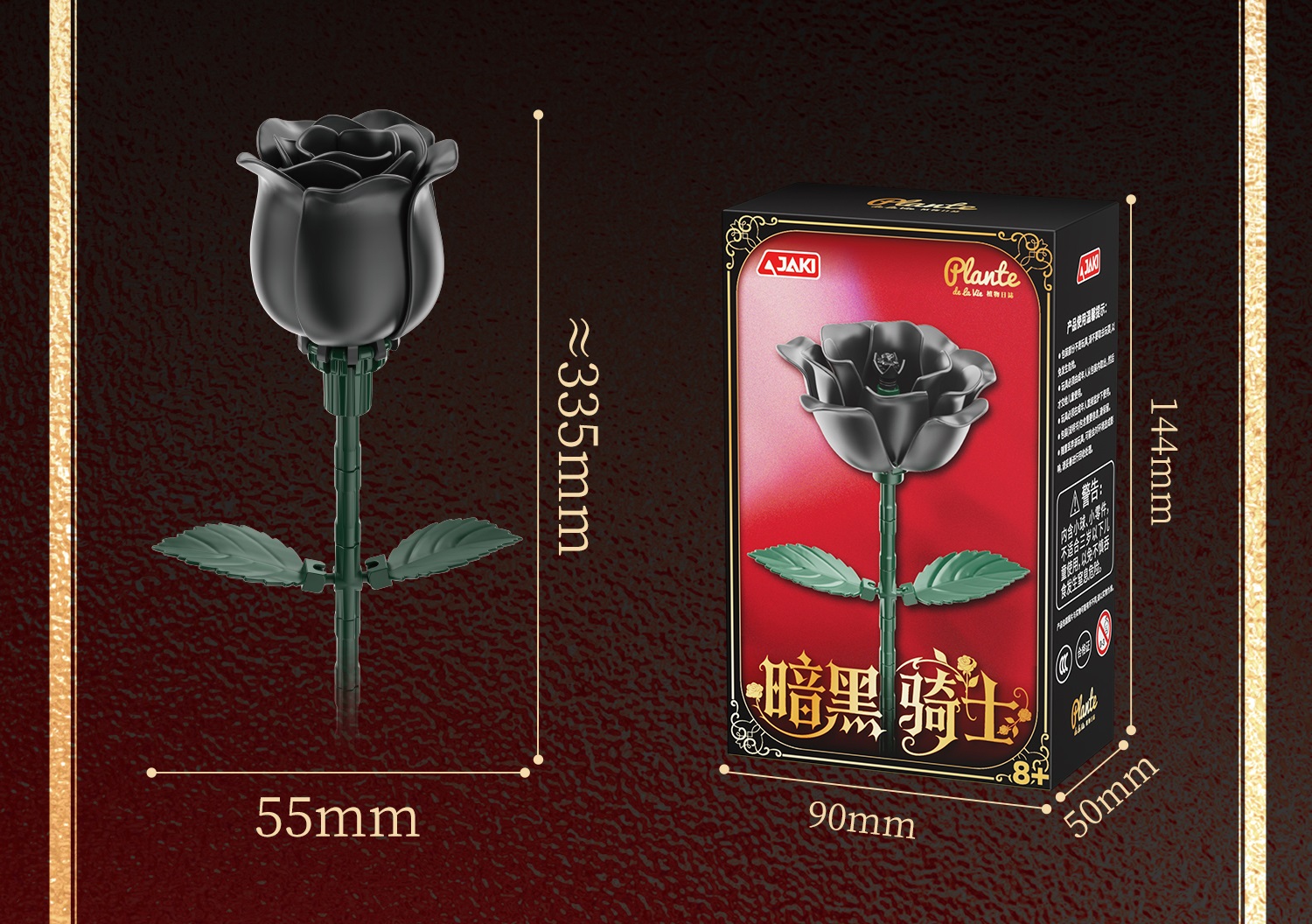 Sestavi edinstven šopek, ki združuje skrivnostno lepoto temnih vrtnic z divjo eleganco eksotičnih rastlin. Komplet vsebuje črno vrtico z višino 33 cm, cvetovi in listi so nastavljivi in snemljivi, kar ti omogoča, da si šopek urediš povsem po svojem okusu, od minimalistične elegance do razkošnega gotičnega razcveta.